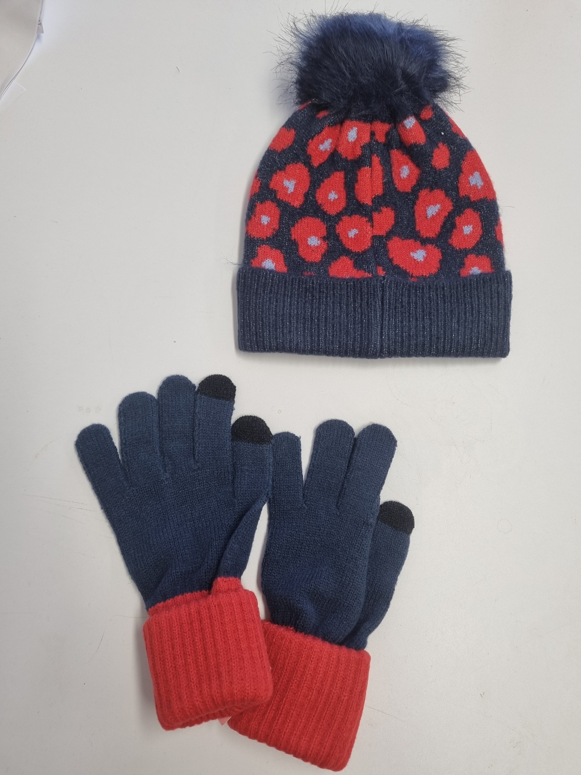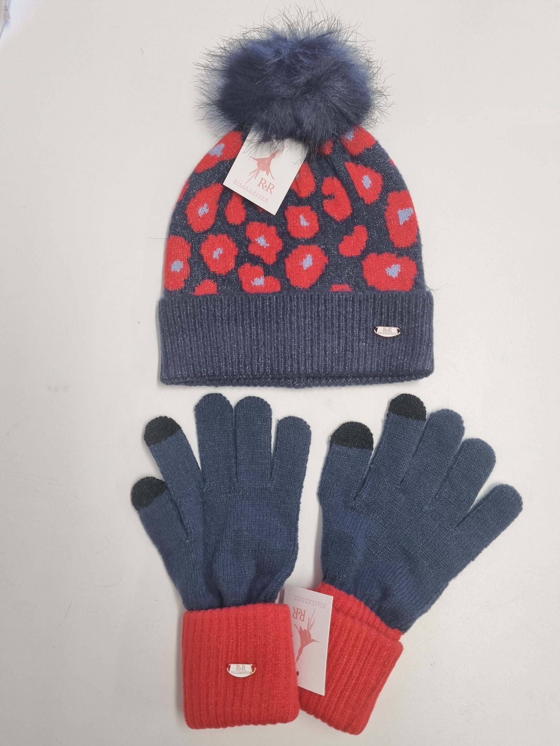 Relax & Renew Rosie Hat & Glove Set Navy Red